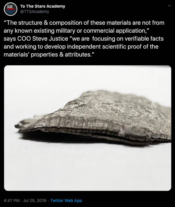 "A estrutura e a composição desses materiais não são tem nenhuma aplicação militar ou comercial existente conhecida”, disse o COO Steve Justice. "Estamos focando em fatos verificáveis e trabalhando para desenvolver provas científicas independentes das propriedades e atributos dos materiais". pic.twitter.com/GUbPBSPl7M